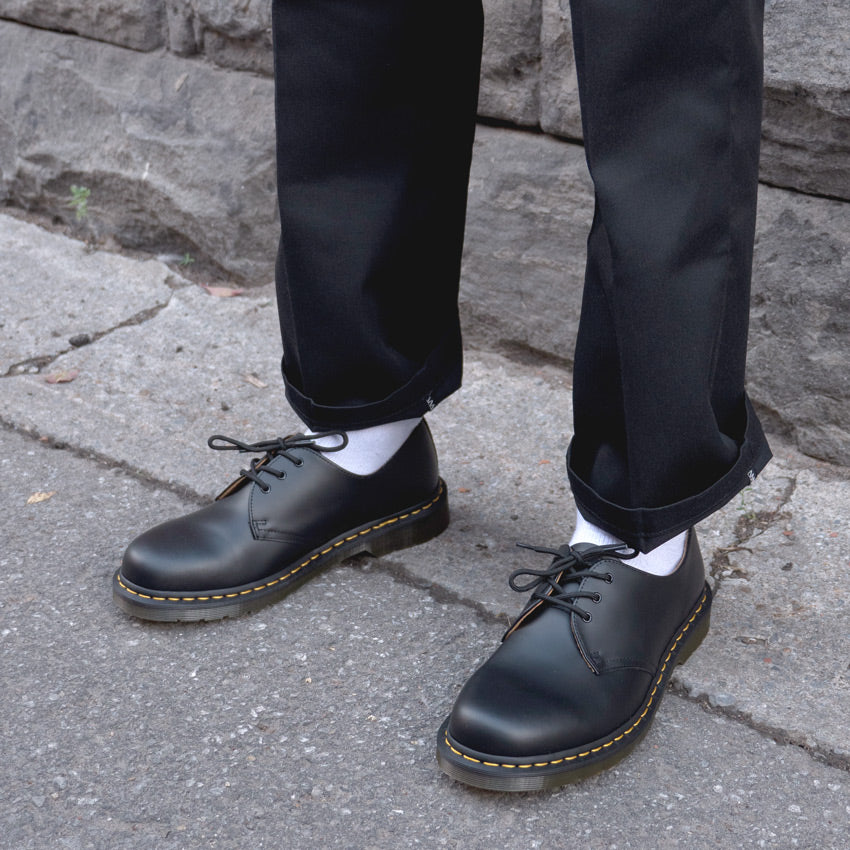 Les emblématiques chaussures Oxford en cuir lisse Dr. Martens 1461. Ces chaussures Gibson classiques à 3 œillets sont dotées des semelles à trépointe traditionnelles de Dr. Martens, offrant durabilité et style intemporel. Disponibles en plusieurs couleurs, notamment le Noir lisse classique et le Rouge cerise lisse accrocheur. Enfilez une légende.