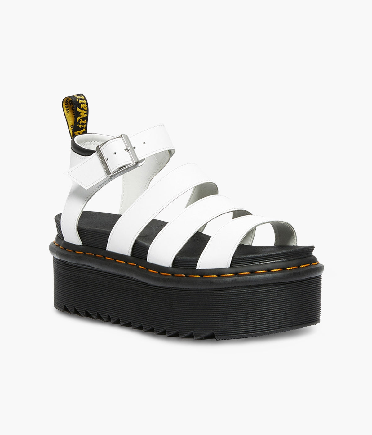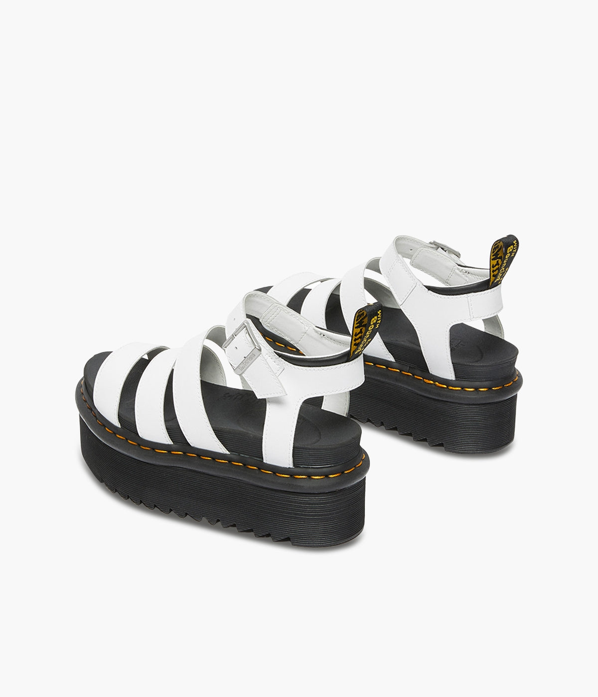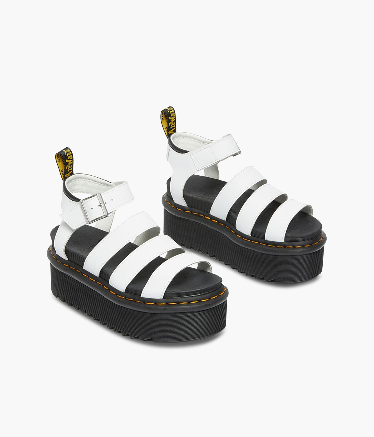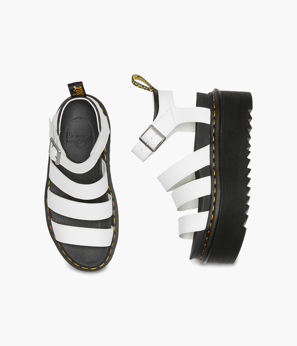 Découvrez le confort et le style tout au long de la journée avec les sandales à plateforme avec bride Blaire en cuir Hydro Dr. Martens. Construites sur la semelle plateforme Zebrilus emblématique et légère, ces sandales sont dotées d'un col rembourré et d'une assise plantaire en mousse à mémoire de forme SoftWair pour un amorti supérieur. Fabriquées en cuir Hydro durable, un cuir lisse recouvert de PU avec une finition mate, ces sandales sont conçues pour durer. La bride cheville réglable assure un ajustement parfait, tandis que les surpiqûres jaunes et la boucle au talon signature ajoutent une touche d'ADN classique de Doc Martens. Avec une hauteur de plateforme de 2 3/8 pouces et une hauteur de talon de 3 pouces, ces sandales ajoutent une touche de confiance à votre look. Veuillez noter que ces sandales taillent grand. Si vous êtes entre deux tailles, nous vous recommandons de commander une taille en dessous. Rehaussez votre style – commandez votre paire dès aujourd'hui !