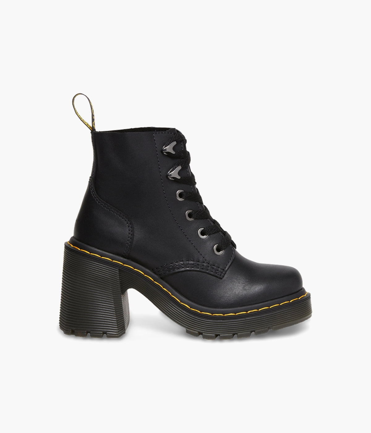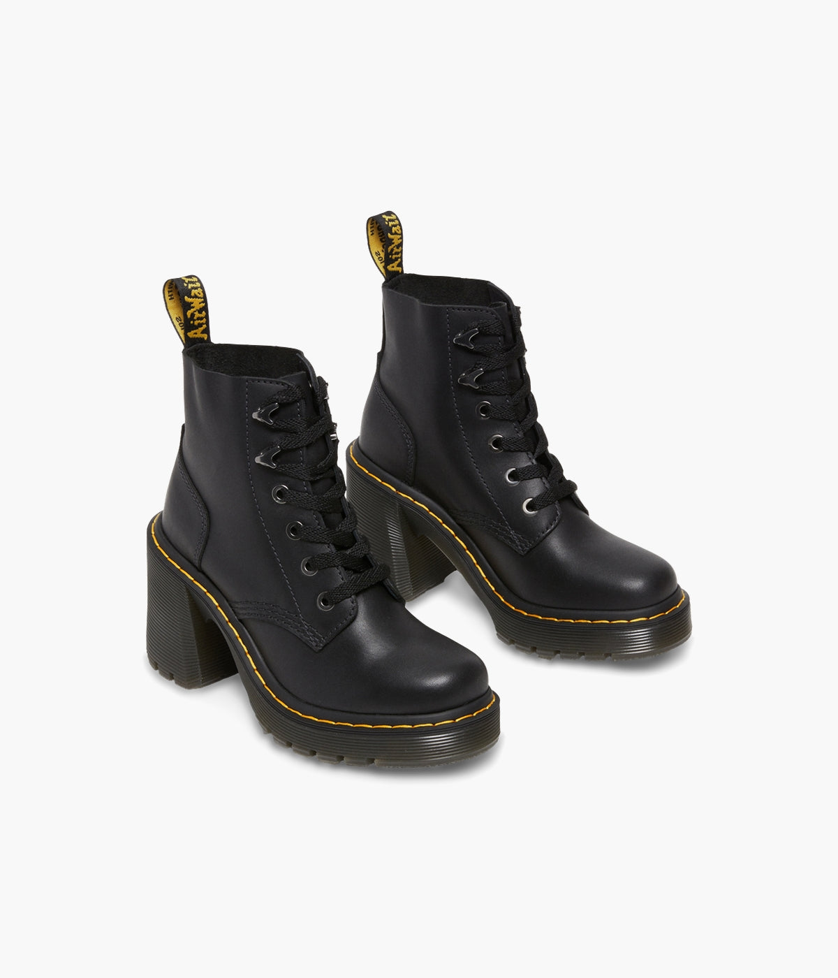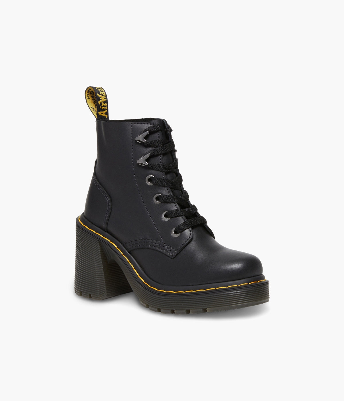 Affirmez votre style avec les bottes à talon évasé Jesy Sendal en cuir à lacets Dr. Martens. Ces bottes sont confectionnées en cuir Sendal lisse et pleine fleur, un cuir nappa semi-aniline d'aspect naturel au toucher luxueux. Montées sur le talon évasé Arden de 3 3/4 pouces et la plateforme de 1 1/8 pouce, les Jesy offrent un impact maximal. Les détails incluent un contrefort de talon externe, des crochets de ski en forme de flèche, des œillets couleur bronze et la surpiqûre Goodyear jaune incomparable, un témoignage de la durabilité reconnue de Dr. Martens. Finies avec la boucle de talon griffée emblématique de Dr. Martens, ces bottes sont conçues pour durer et faire tourner les têtes. La forme standard les rend parfaites pour les pieds de largeur moyenne à large. Découvrez le mélange parfait de style et de substance. Achetez les bottes Jesy dès aujourd'hui et rehaussez votre style.