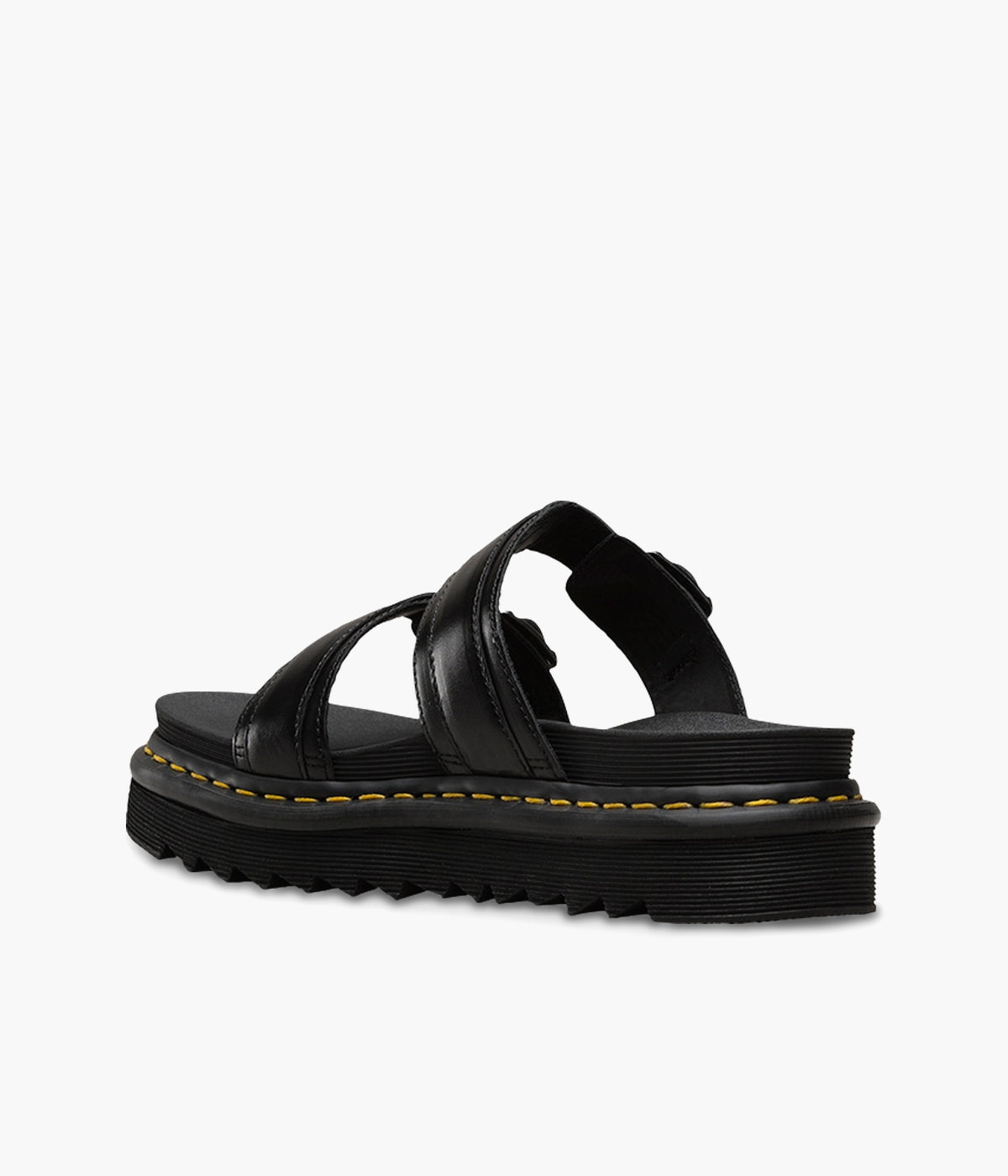 Découvrez un confort ultime avec les sandales à boucle coulissante en cuir Myles Brando de Dr. Martens. Ces claquettes légères sont confectionnées à partir de deux épaisses brides en cuir Charro Brando, offrant à la fois douceur et durabilité. La semelle innovante Ziggy, fabriquée en matériau EVA ultra-léger, offre une adhérence supérieure grâce à sa bande de roulement ondulée épaisse. Conçues pour durer grâce à la construction Goodyear, ces sandales sont dotées de détails de boucle en métal et du point de soudure jaune emblématique. Le cuir Brando pleine fleur et ciré développera un aspect vieilli unique au fil du temps, ajoutant à leur caractère. Améliorez vos chaussures d'été dès aujourd'hui !