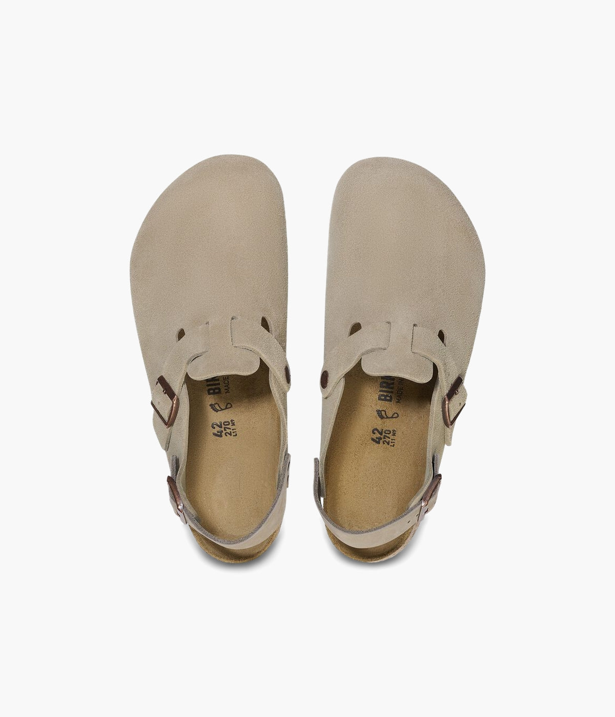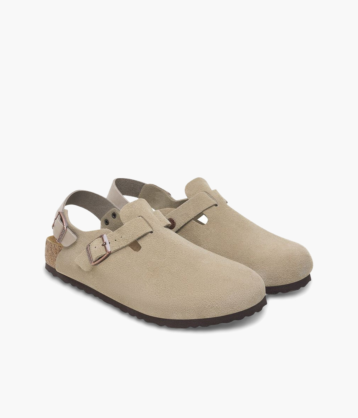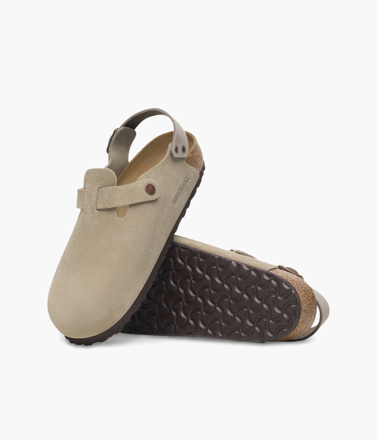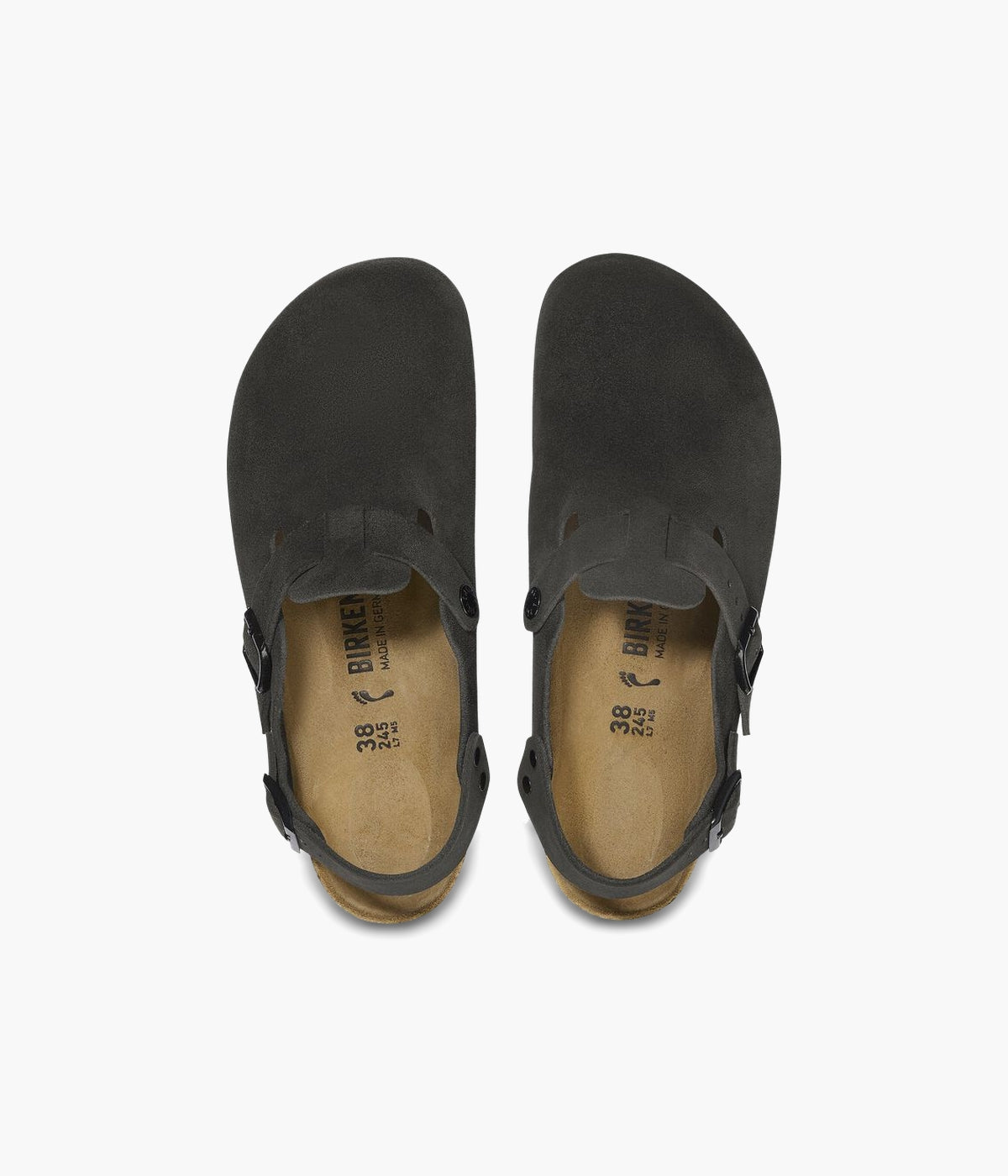 Experience timeless comfort and style with the Birkenstock Tokio Suede Leather Regular clog. Crafted with a classic suede upper and a tonal nubuck leather backstrap, the Tokio offers a sophisticated look and feel. Its contoured cork-latex footbed molds to your foot, providing custom support that improves with wear. Enjoy superior comfort with the suede footbed lining and flexible EVA sole. The adjustable front and back straps allow for a personalized fit. Made in Germany, the Tokio is a testament to quality craftsmanship and enduring style. Elevate your everyday look and experience unparalleled comfort – order your Birkenstock Tokio today!