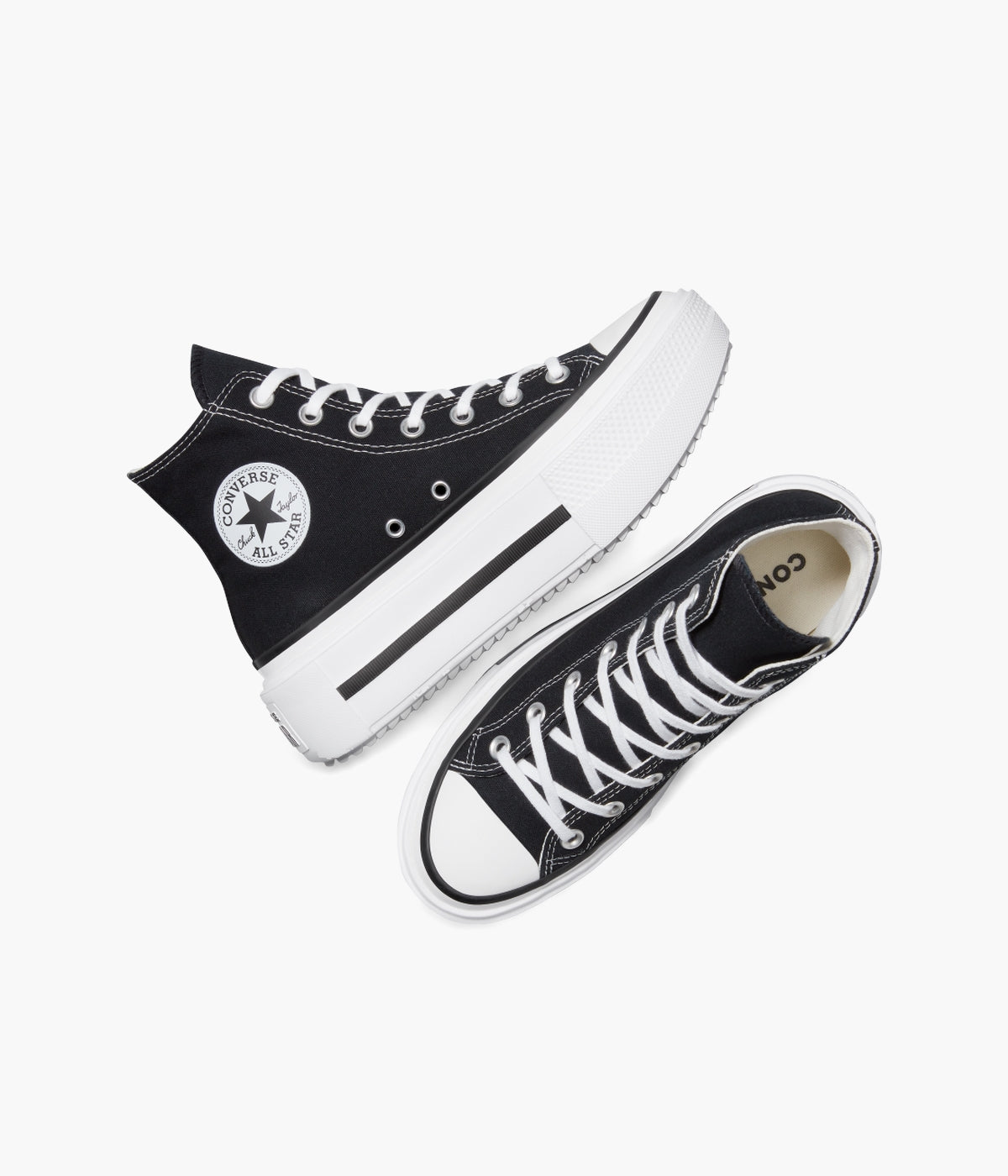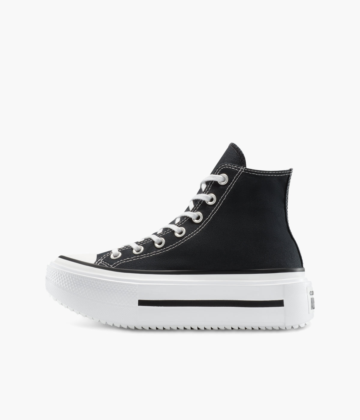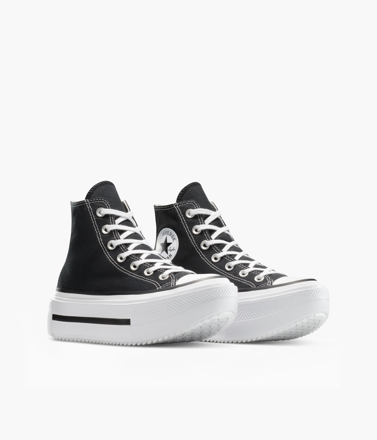 Elevate your style with the All Star Lift Double Stack. These classic Chucks feature a durable canvas upper and a double-stacked platform sole for added height. Lightweight EVA cushioning provides all-day comfort without the bulk. Available in classic colors to complement any outfit, these iconic sneakers are finished with the signature All Star patch. Take your look to new heights – shop now!