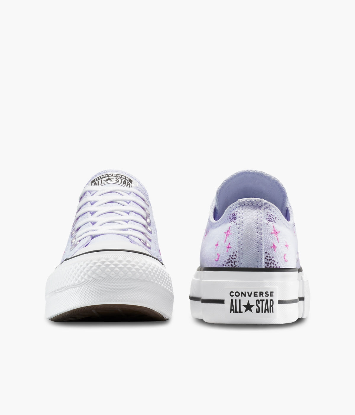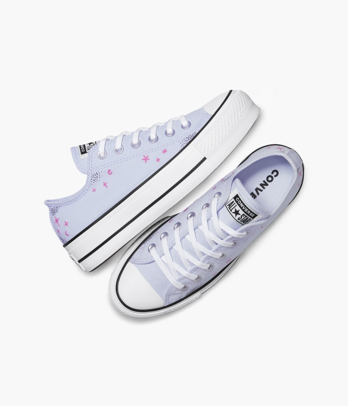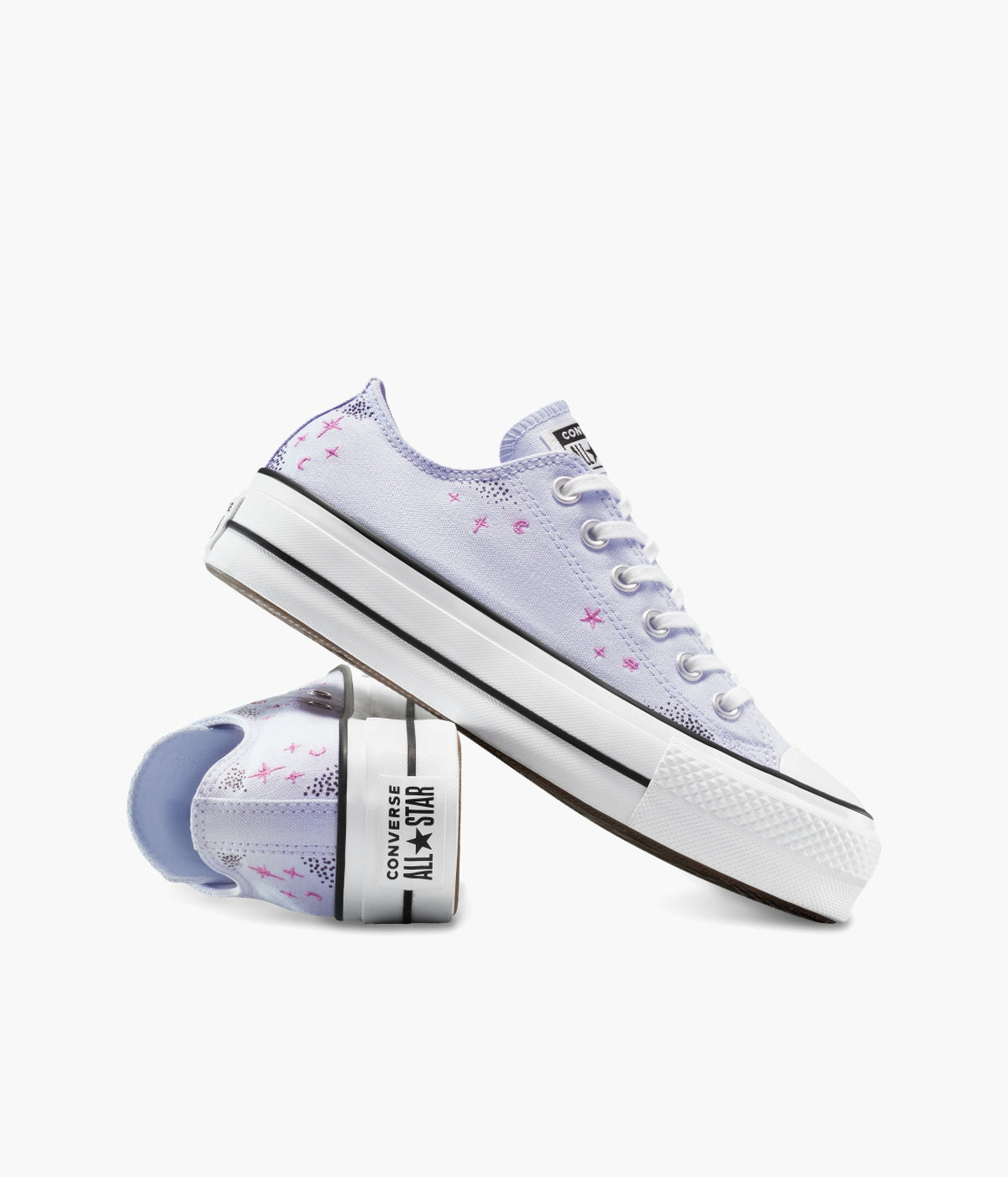Step up your style with the Converse Women's Chuck Taylor All Star Lift Platform Celestial Low Top. Featuring a durable canvas upper and iconic All Star details, these sneakers combine classic comfort with a modern twist. The elevated platform adds height while OrthoLite cushioning ensures all-day comfort. Subtle celestial embroidery brings a unique, astrology-inspired touch to your everyday look. Perfect for those who want to stand out with timeless flair and cosmic charm.