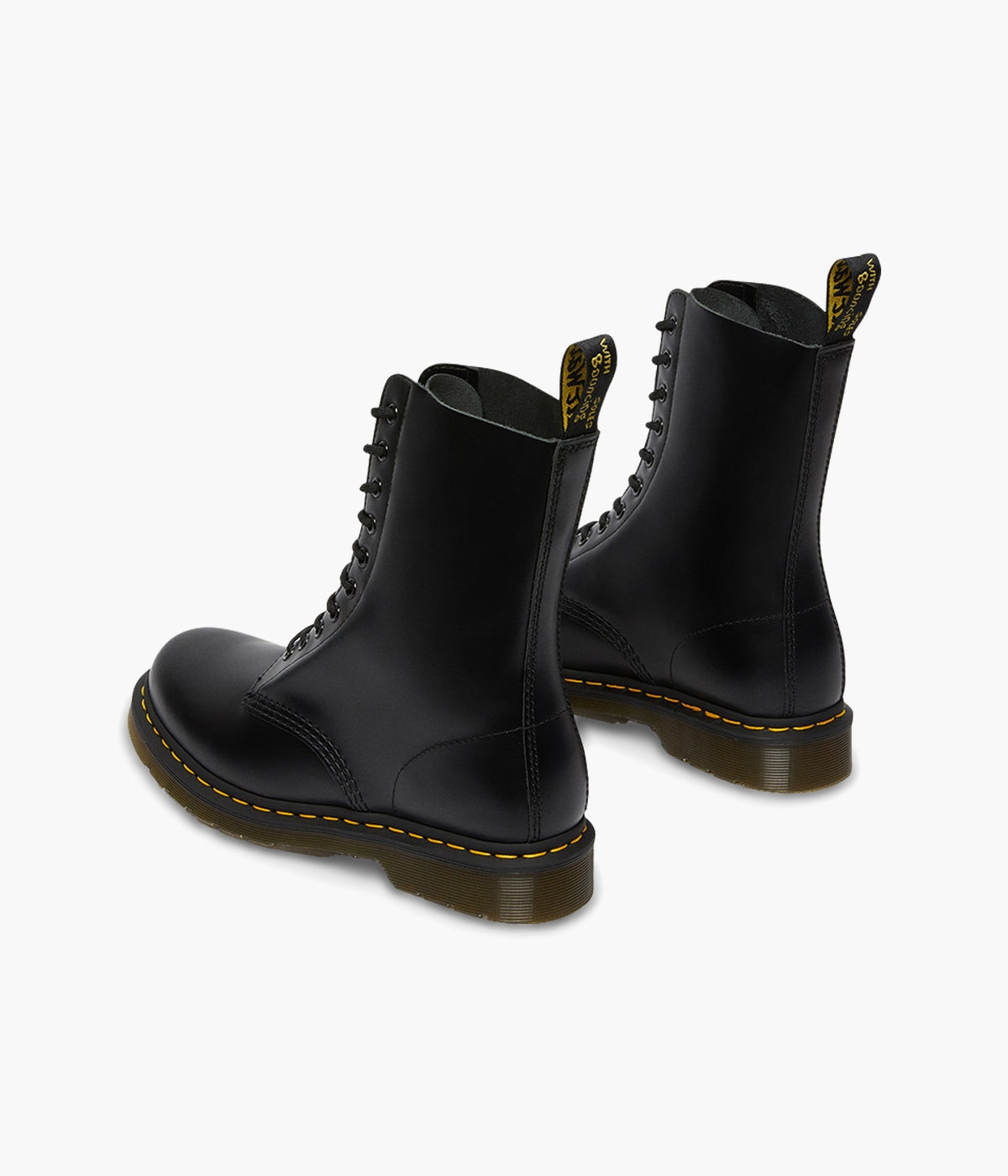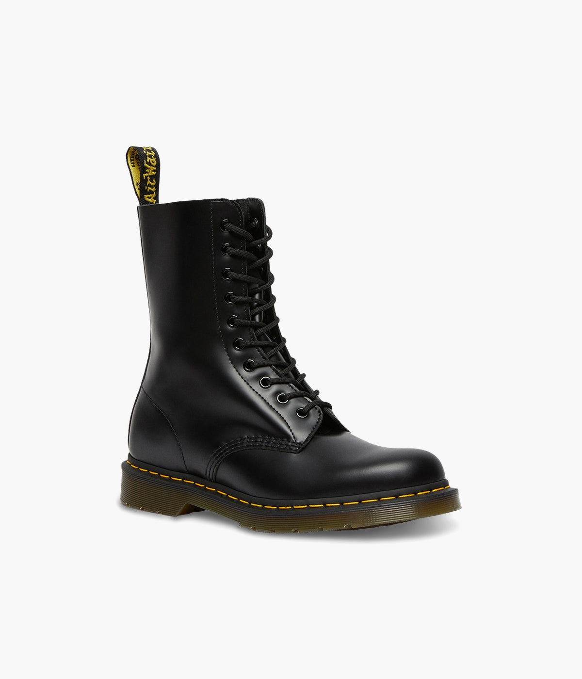 The iconic Dr. Martens 1490 Smooth Leather Mid Calf Boots. This classic 10-eye boot in Black Smooth leather is a timeless essential. Durable construction and unmistakable style make these boots perfect for everyday wear.