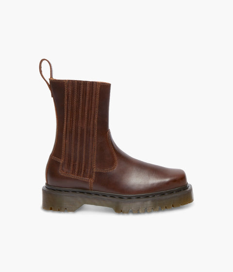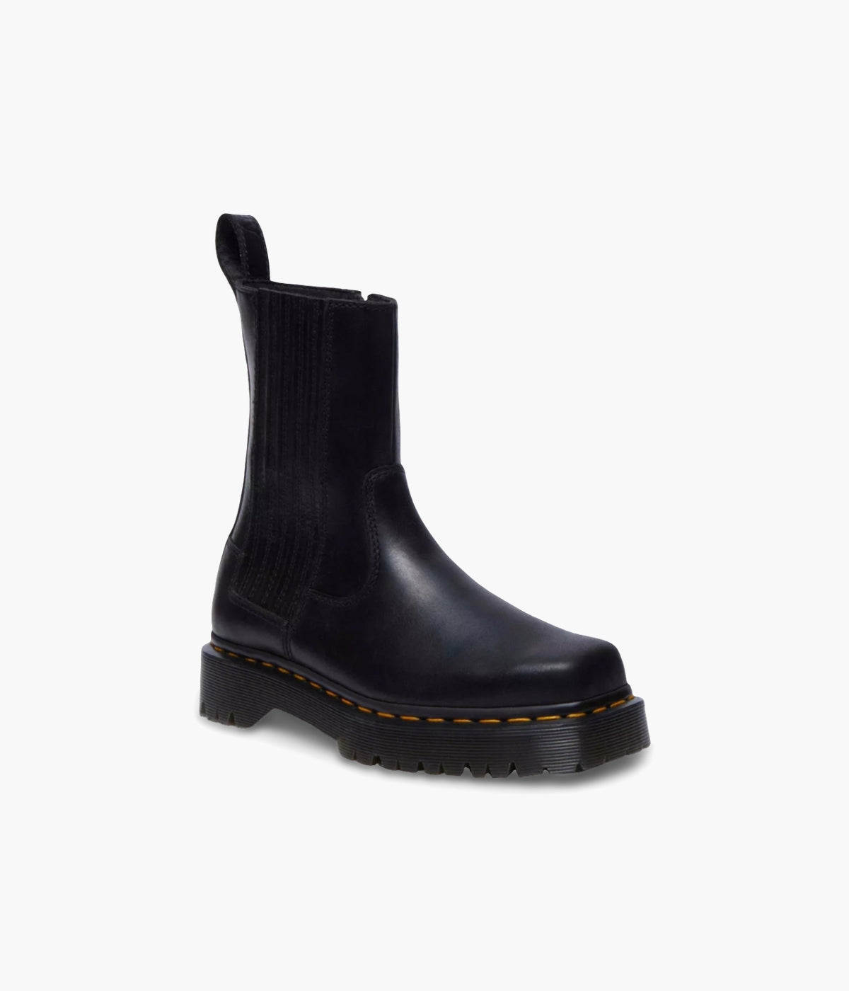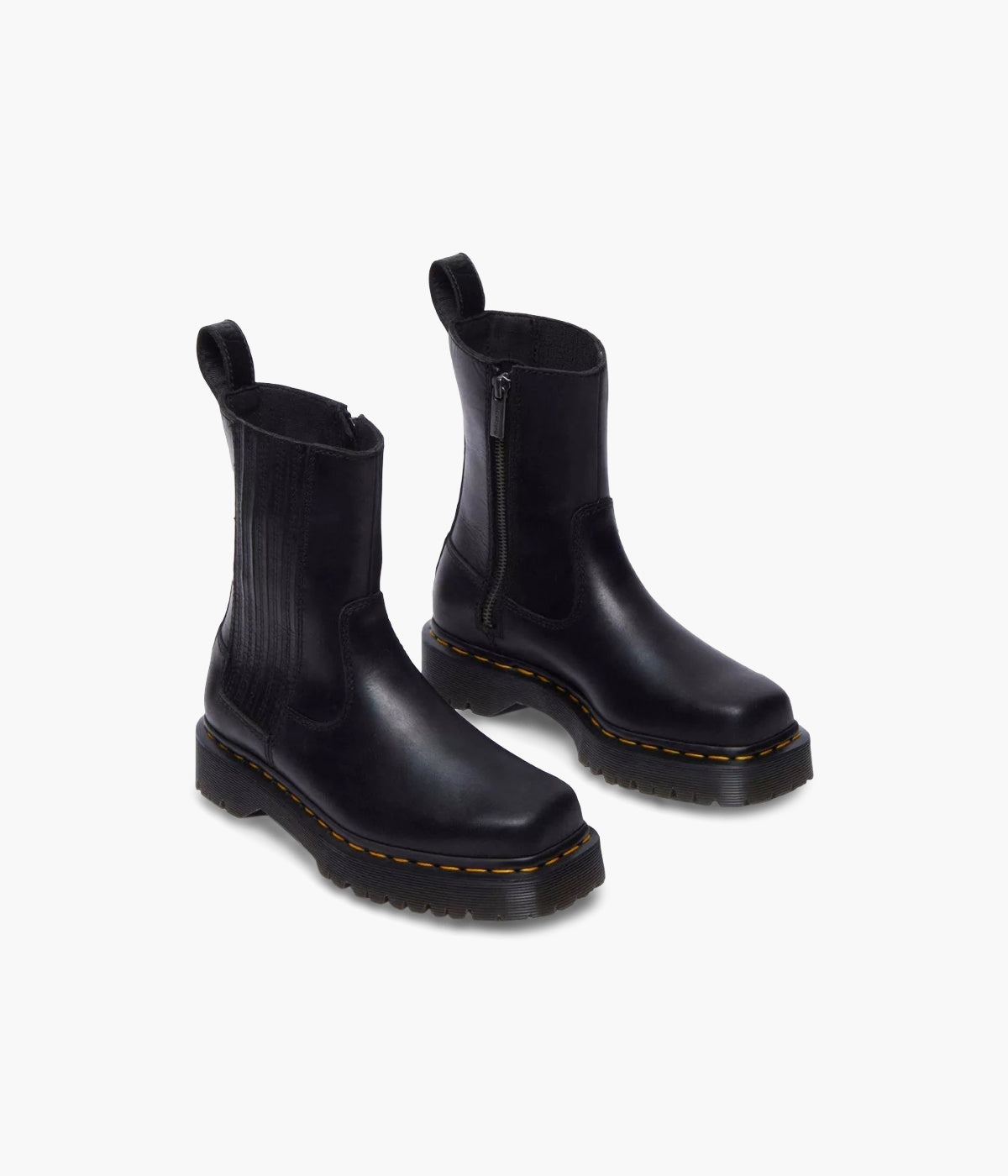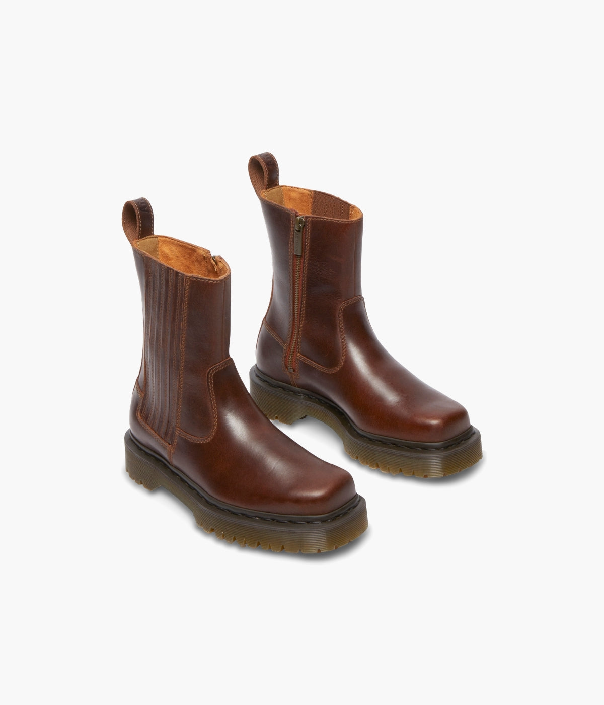 Introducing the Amaayah Lo, a bold and versatile square-toe boot from Dr. Martens. Crafted from premium Orleans leather, this durable material develops a unique, aged look with every wear. Experience effortless on/off with the elasticated side panel and inside zip. Built upon Dr. Martens' elevated Bex Squared sole, these boots not only add a touch of height but also feature deep cleating for a secure stride. The signature yellow welt stitching and embossed heel loop add iconic Dr. Martens DNA. Easy to care for, simply clean with a damp cloth. Step into style and comfort with the Amaayah Lo boots – order yours today!