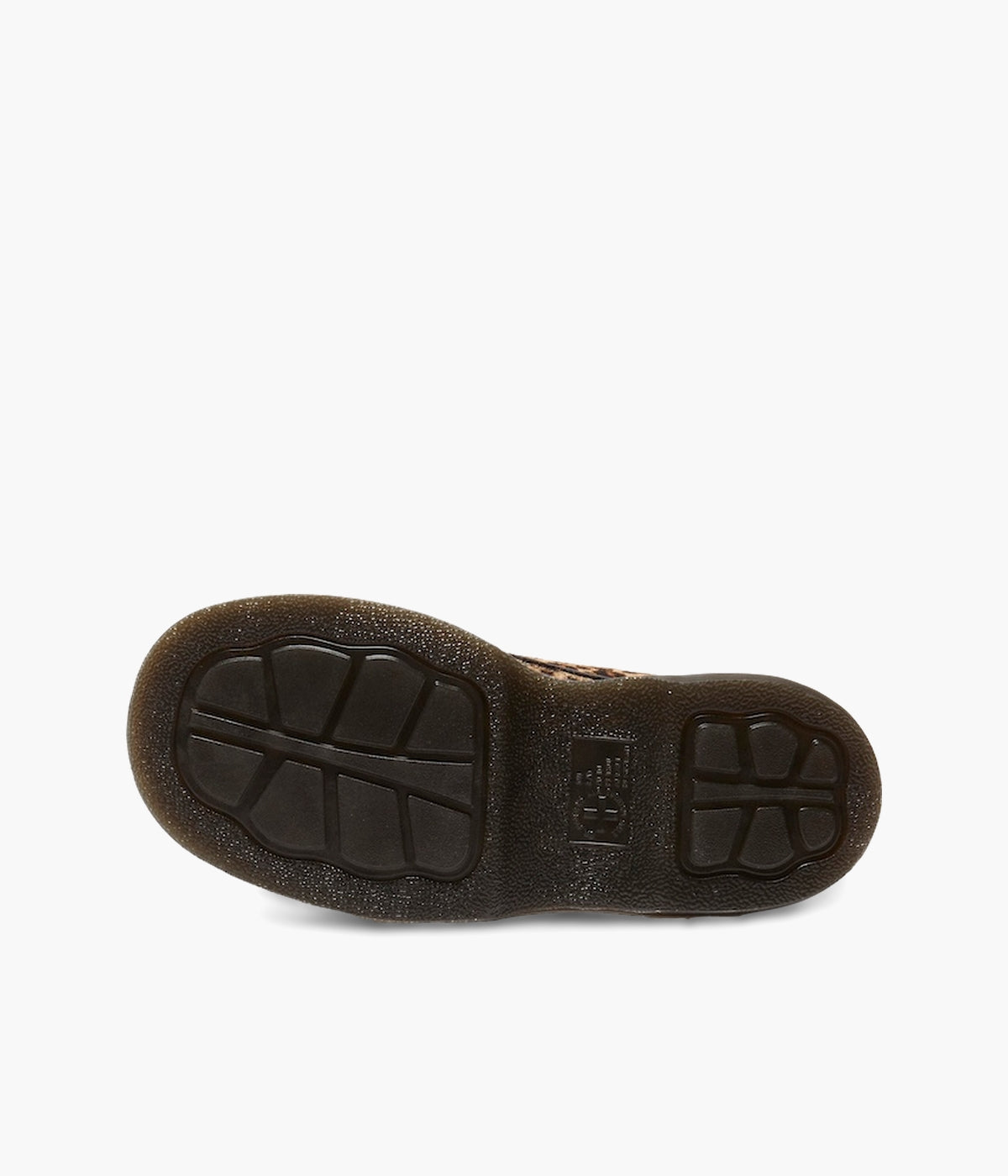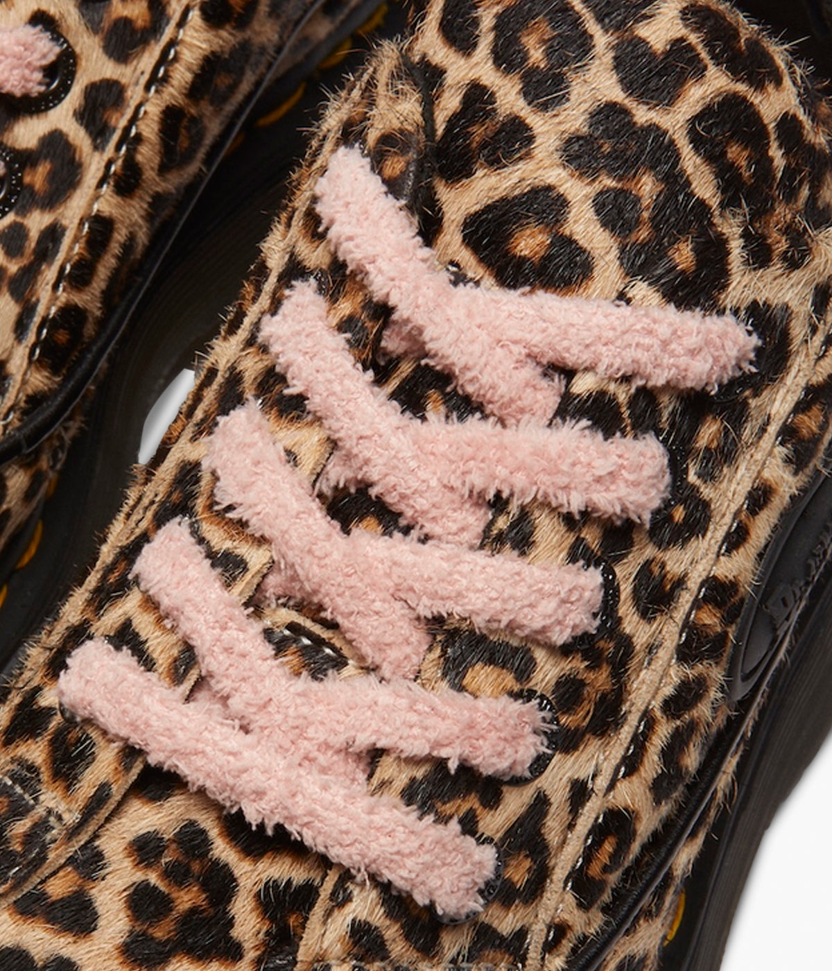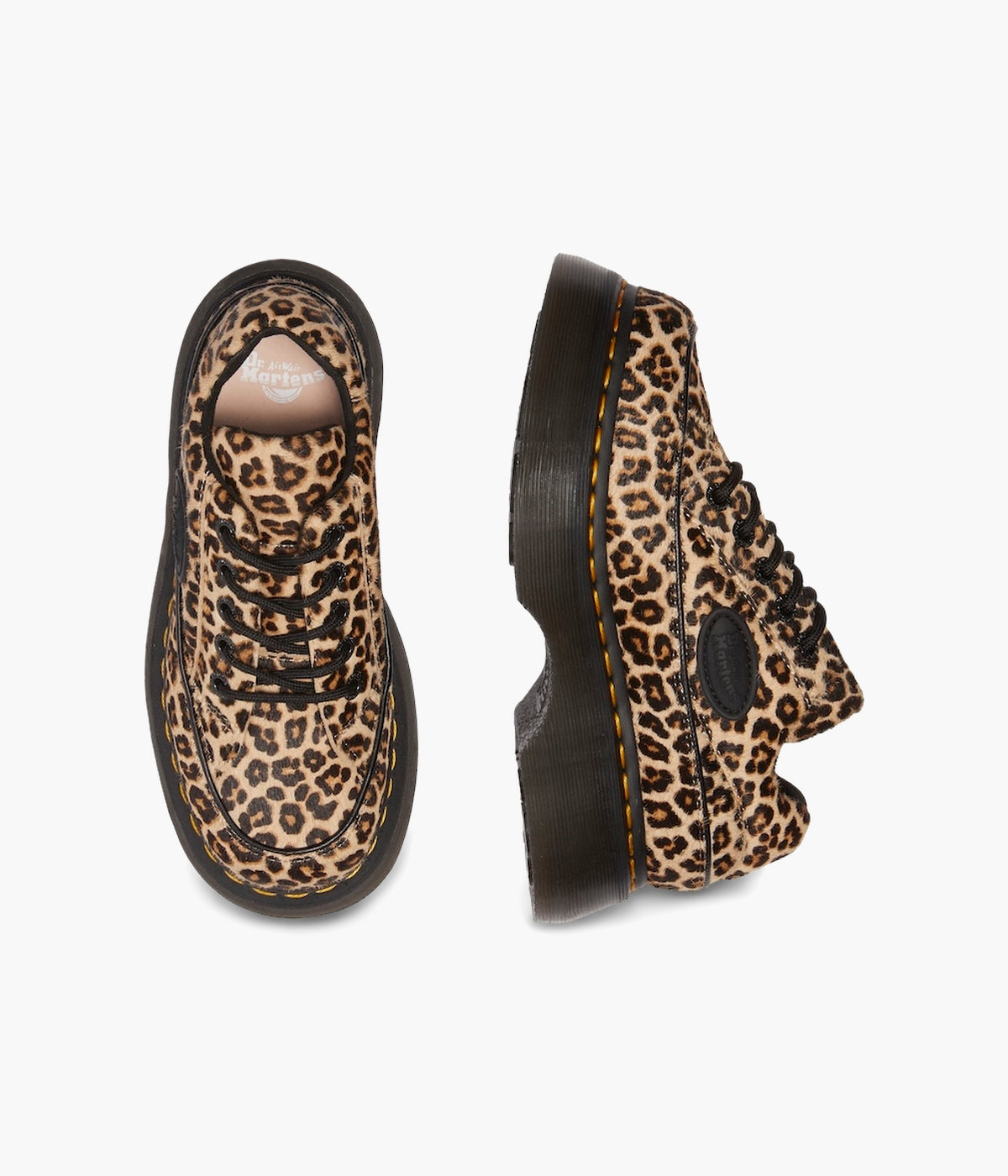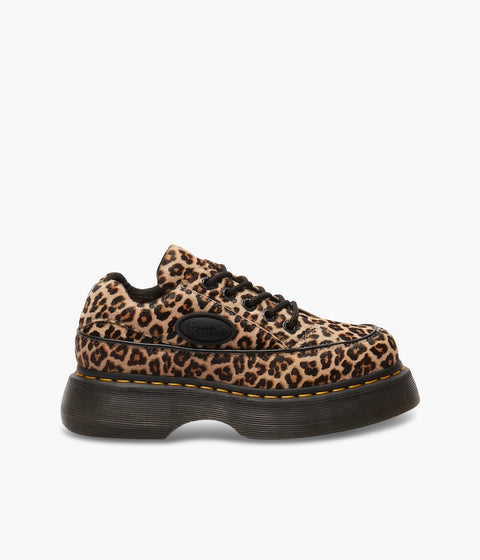 Make a statement with the Dr. Martens Buzz 5-eye leopard shoes. Inspired by '90s fashion, these shoes boast a head-turning design from the chunky, barrel-edge Buzz sole to the bold leopard print. Crafted from genuine Hair-On cow leather, the Buzz 5-eye features DM's signature grooving, black welt stitching, and a leaf pattern on the undersole. The padded collar ensures comfort while the Goodyear welt construction guarantees long-lasting durability. An inflated, rubberized badge mirrors the sole, adding a unique touch. Step into style and turn heads with these iconic Dr. Martens.