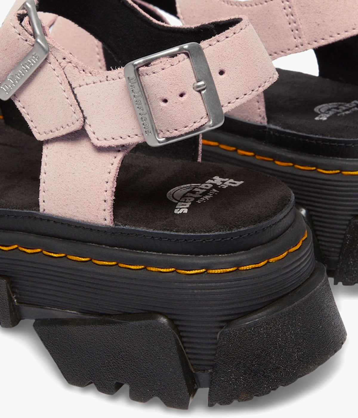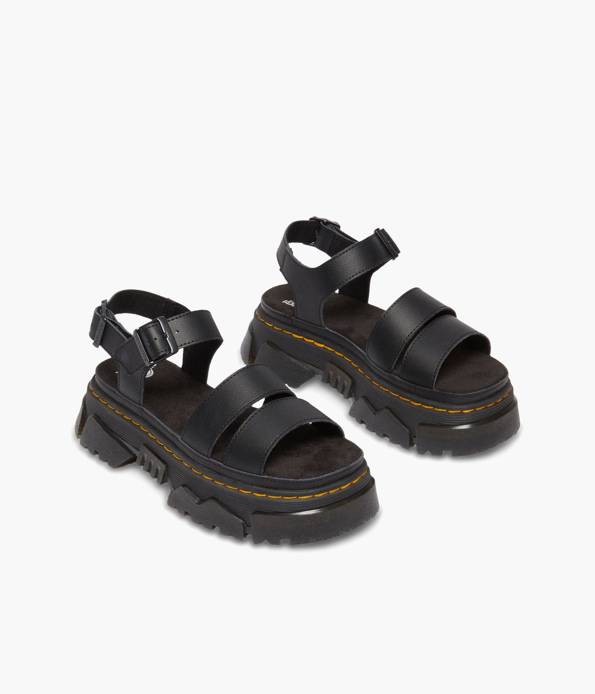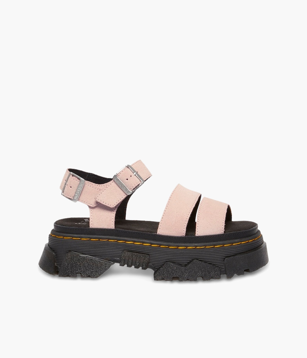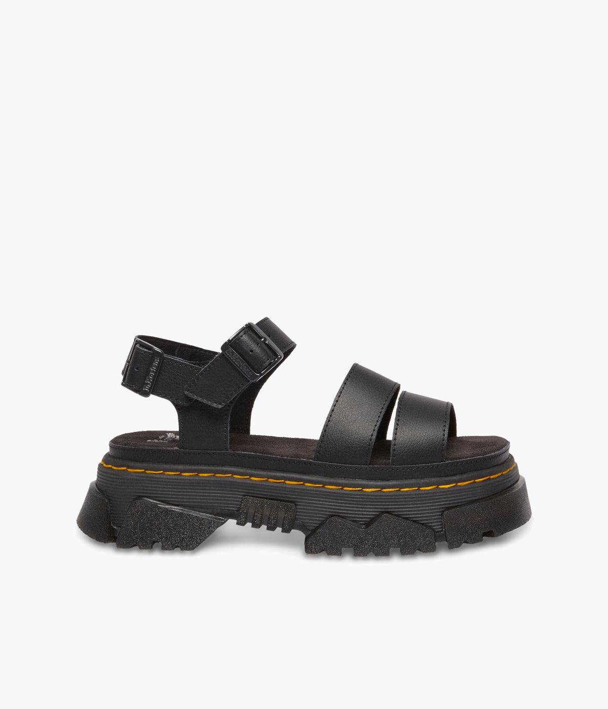 Walk bold. Feel good. The Mattison 2 Strap sandal, built on Dr. Martens' unmissable new Mattison platform sole, delivers both head-turning style and all-day comfort. This hybrid sole features a comfortable EVA midsole and a striking, exaggerated PVC tread that extends up the side walls, creating a unique jagged pattern. Marked with DM's signature grooving and yellow stitching, the sole also includes a suede-covered foam footbed for superior cushioning. Two adjustable buckles on the ankle strap ensure a perfect, secure fit. Step up your style game. Shop the Mattison 2 Strap sandals today!