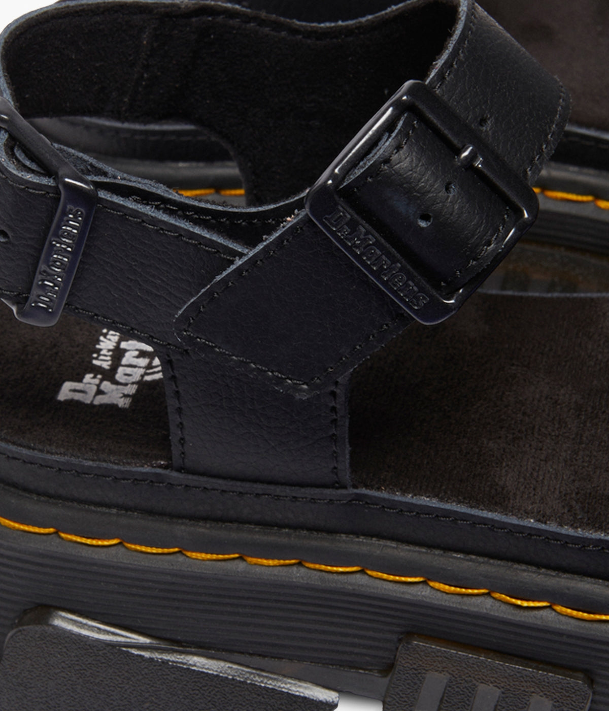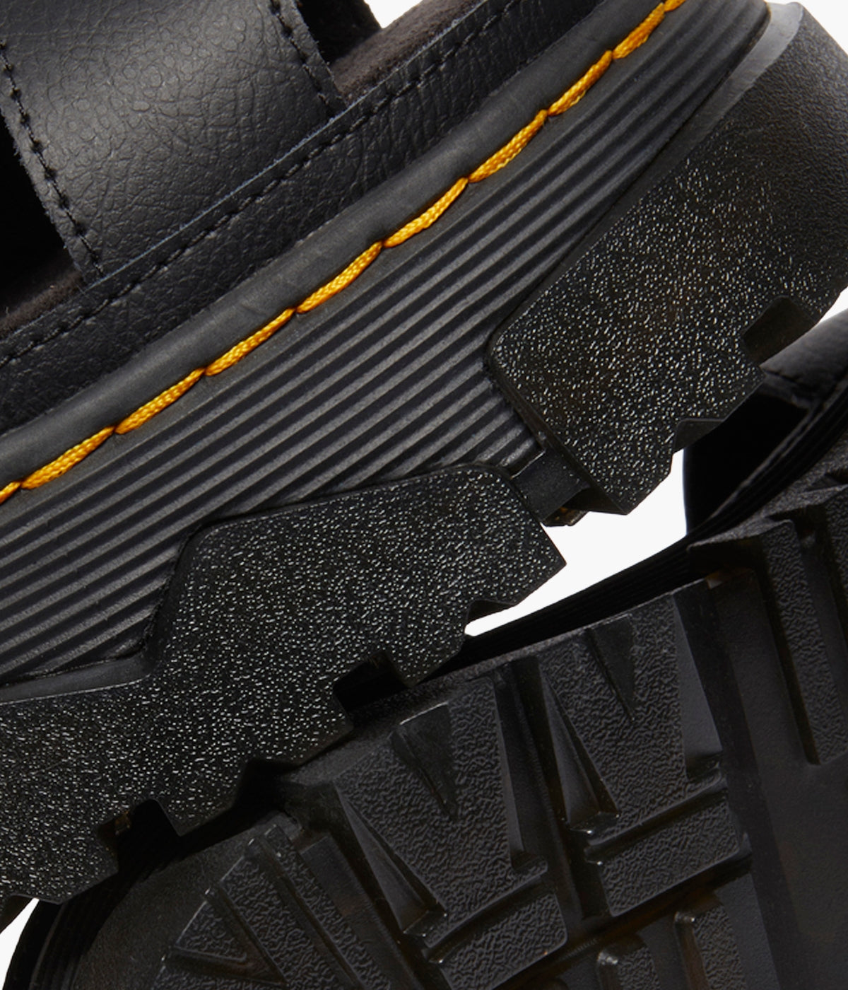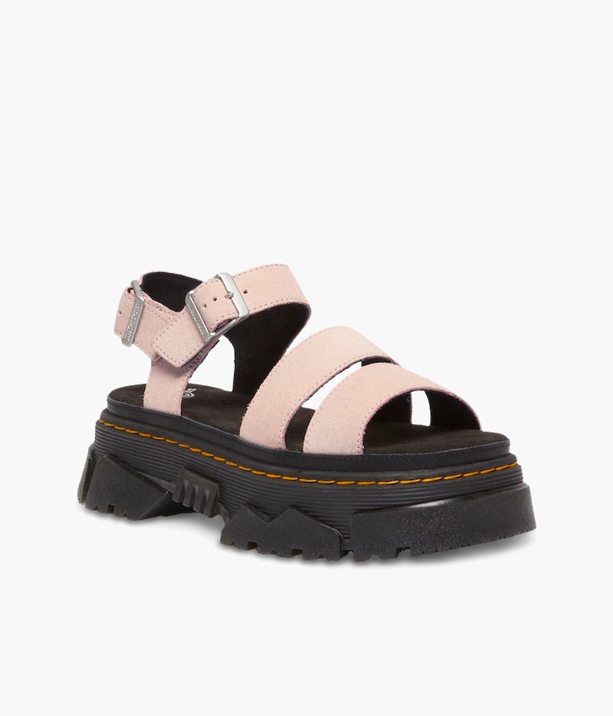 Walk bold. Feel good. The Mattison 2 Strap sandal, built on Dr. Martens' unmissable new Mattison platform sole, delivers both head-turning style and all-day comfort. This hybrid sole features a comfortable EVA midsole and a striking, exaggerated PVC tread that extends up the side walls, creating a unique jagged pattern. Marked with DM's signature grooving and yellow stitching, the sole also includes a suede-covered foam footbed for superior cushioning. Two adjustable buckles on the ankle strap ensure a perfect, secure fit. Step up your style game. Shop the Mattison 2 Strap sandals today!