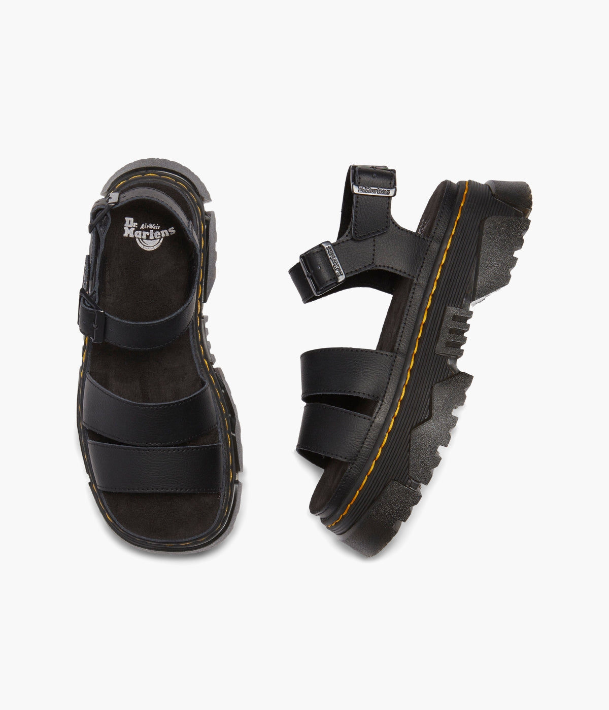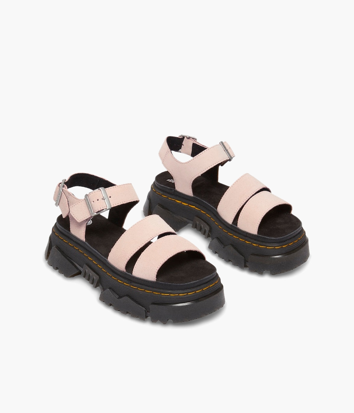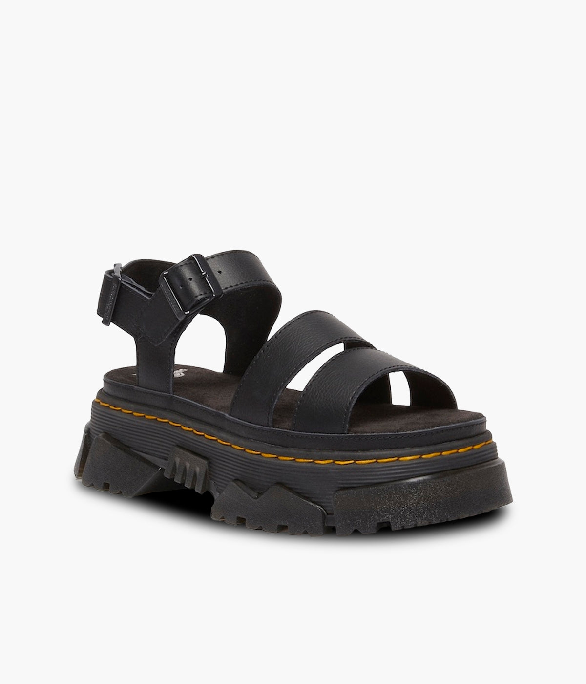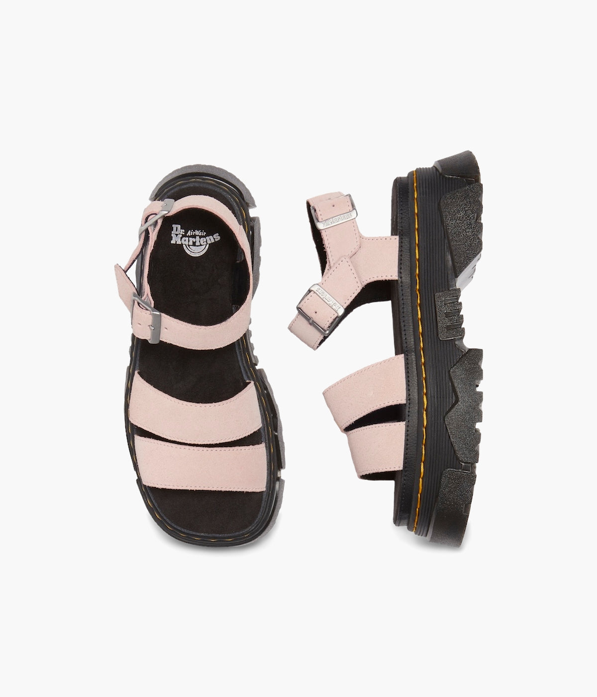 Walk bold. Feel good. The Mattison 2 Strap sandal, built on Dr. Martens' unmissable new Mattison platform sole, delivers both head-turning style and all-day comfort. This hybrid sole features a comfortable EVA midsole and a striking, exaggerated PVC tread that extends up the side walls, creating a unique jagged pattern. Marked with DM's signature grooving and yellow stitching, the sole also includes a suede-covered foam footbed for superior cushioning. Two adjustable buckles on the ankle strap ensure a perfect, secure fit. Step up your style game. Shop the Mattison 2 Strap sandals today!