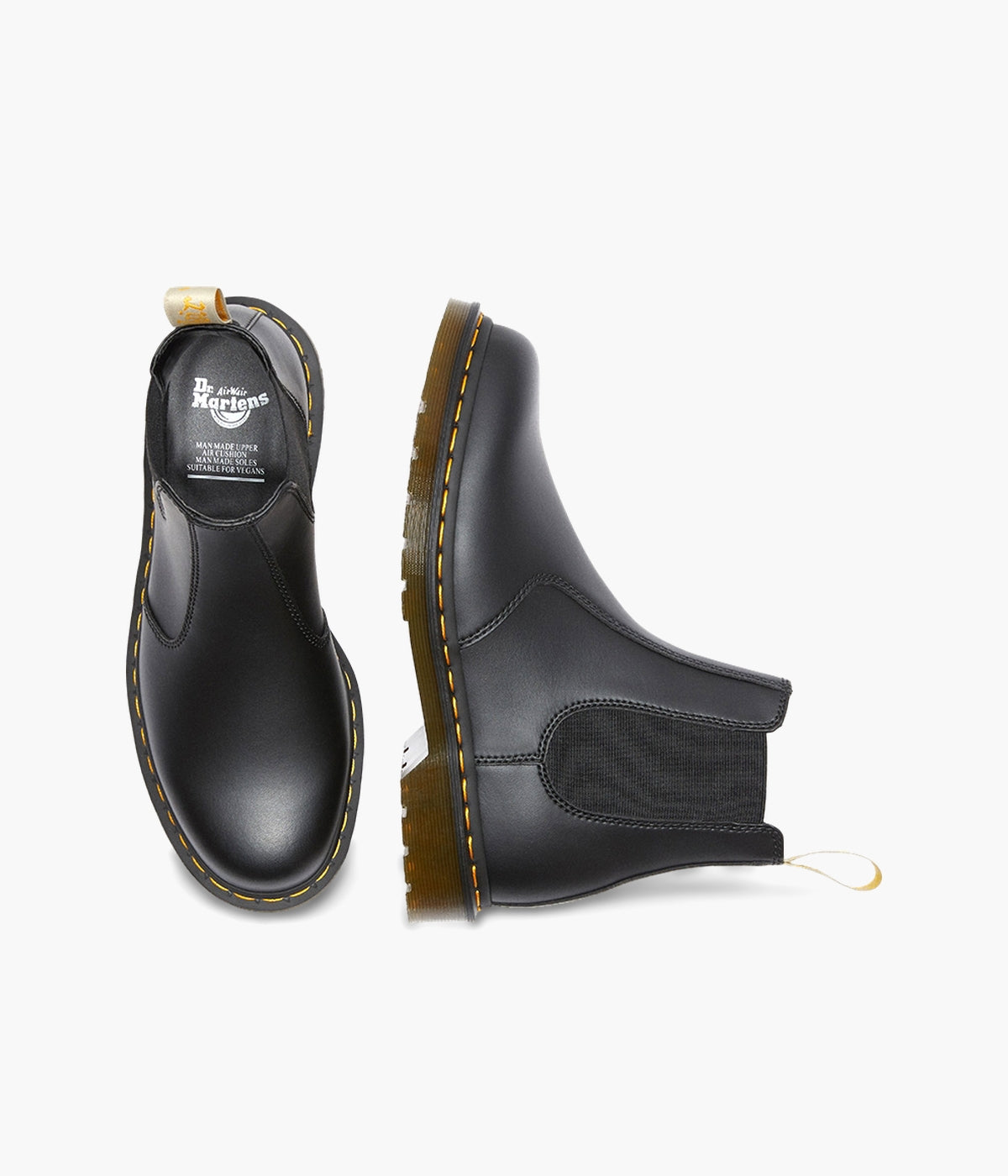 Introducing the Dr. Martens Vegan 2976 Felix Chelsea Boots in Black Felix Rub Off. A modern take on a Victorian classic, these unisex boots retain the iconic Chelsea boot design with a contemporary, vegan twist. Crafted with high-quality, animal-free materials, these boots offer both style and conscience without compromise. Experience the legendary Dr. Martens comfort with our signature AirWair Bouncing Soles, providing superior oil, fat, abrasion, and slip resistance. The Goodyear welted construction and heat-sealed z-welt stitch ensure durability and long-lasting wear. Step into a timeless style that's built to last. Shop your pair today!