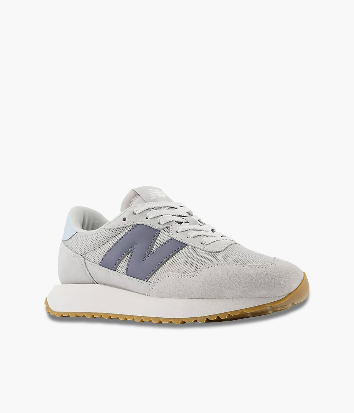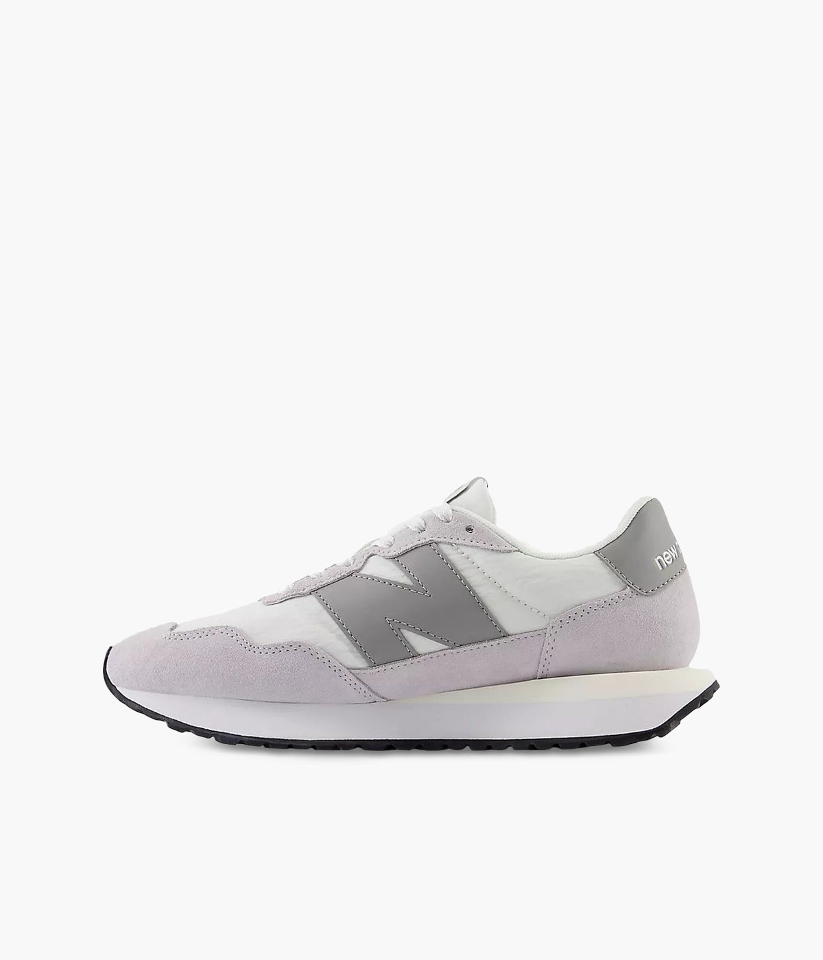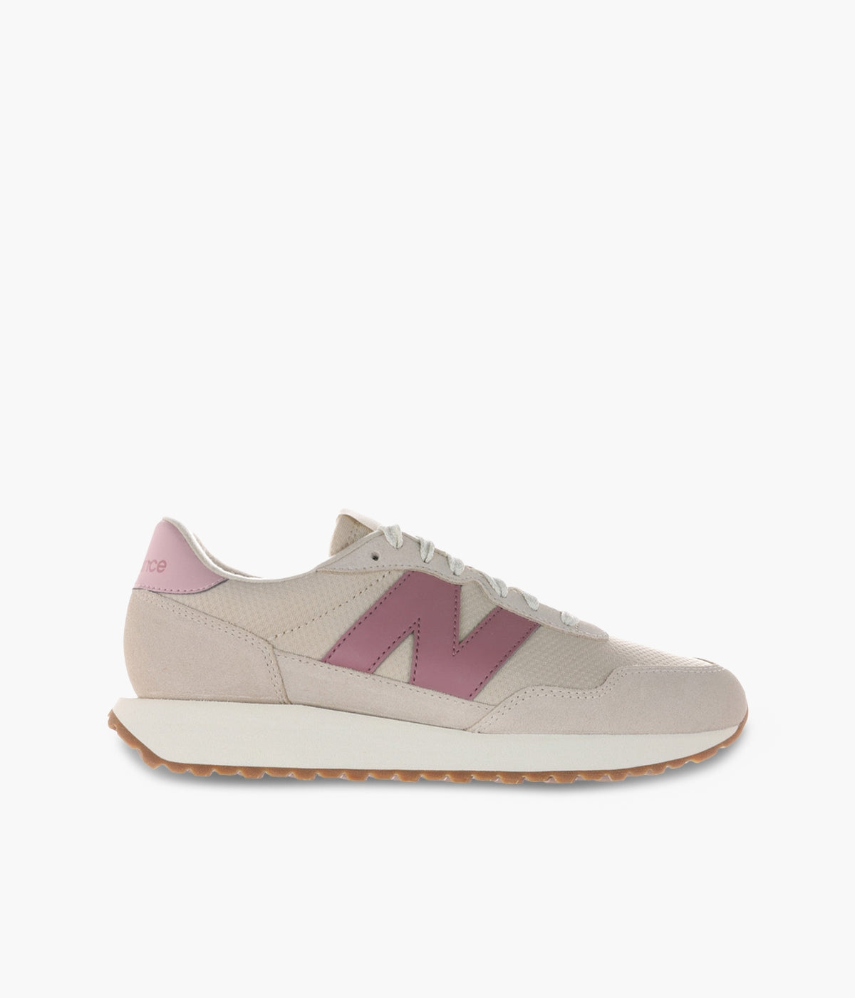 The New Balance Women's 237 is a fresh take on '70s running heritage, blending classic design elements into a sleek and versatile silhouette. This contemporary sneaker boasts an array of features for both style and comfort. The oversized 'N' logo makes a statement, while the unbacked suede, mesh, and nylon upper provides a lightweight and breathable feel. Experience superior comfort with the EVA midsole and enjoy the reliable grip of the large-scale ripple outsole. Unique details like the asymmetric rubber tip wrap and exposed foam tongue add a touch of modern flair. The angled 'New Balance' text at the heel tab completes the look. Upgrade your sneaker game today with the Women's 237. Add to cart now!