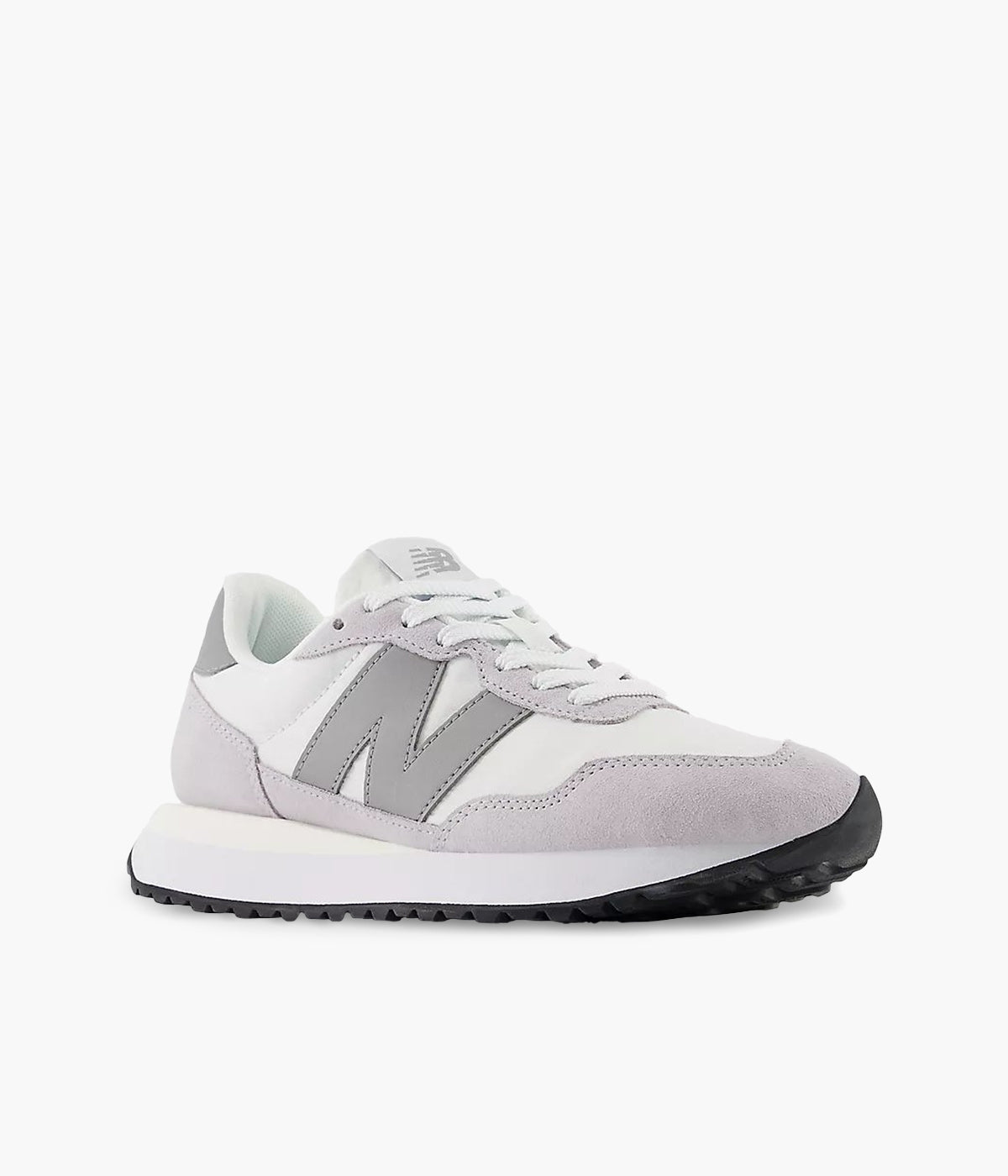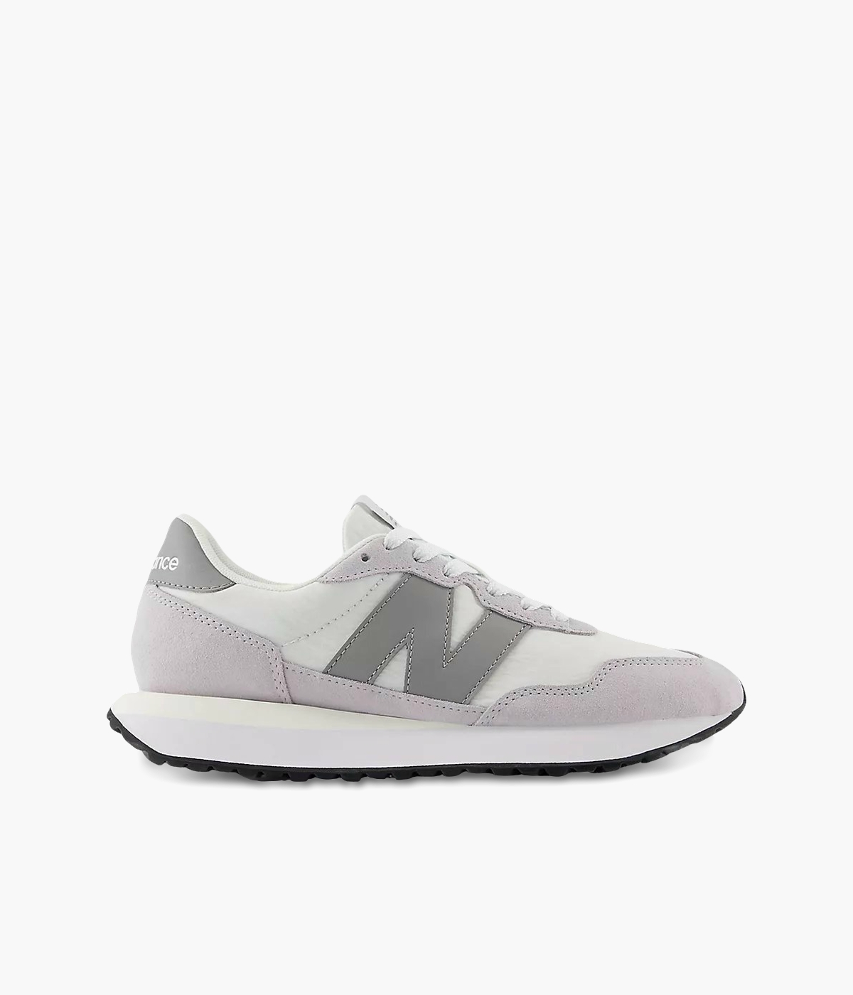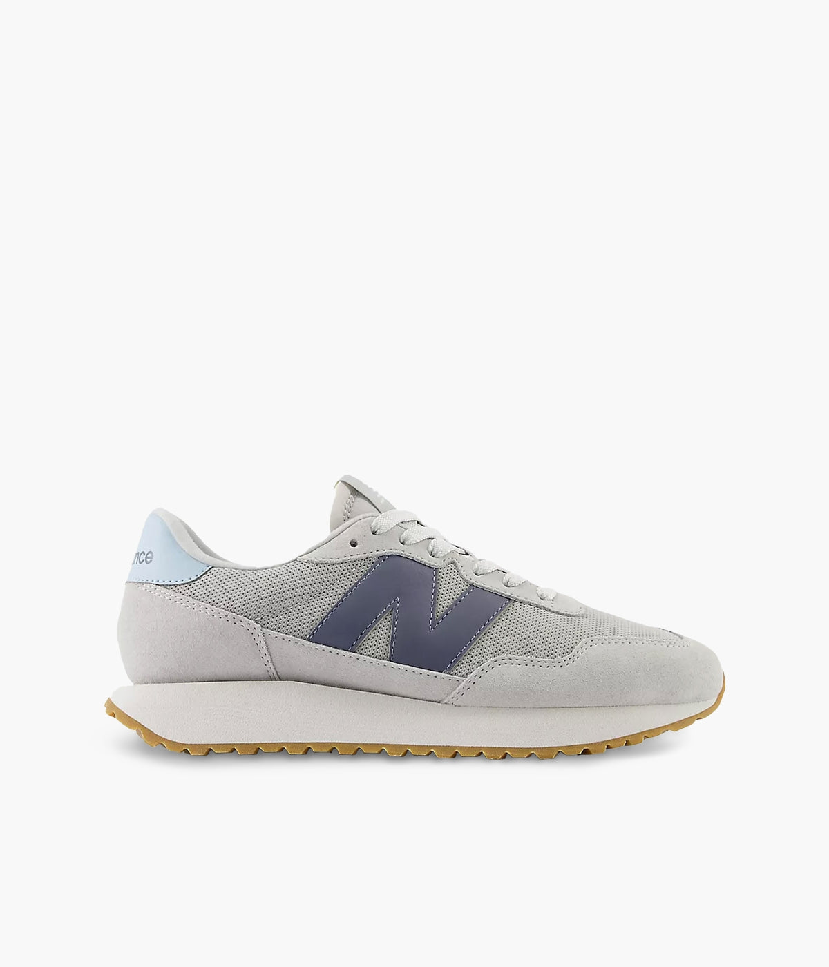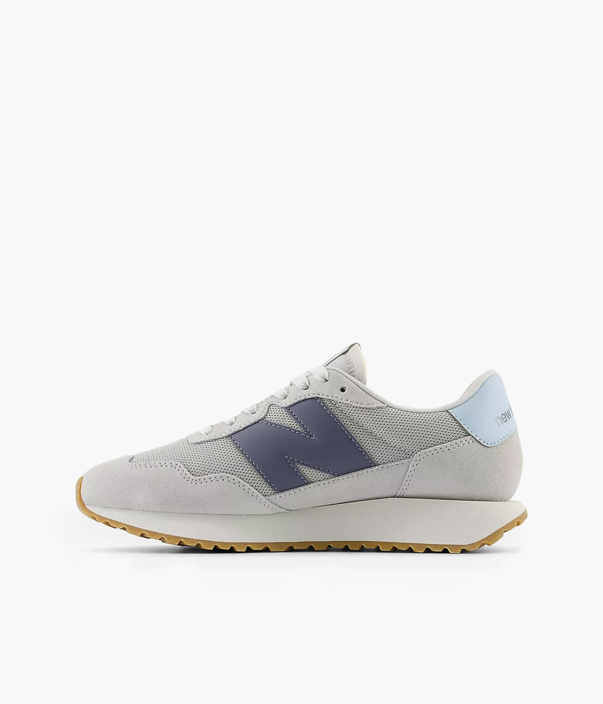 The New Balance Women's 237 is a fresh take on '70s running heritage, blending classic design elements into a sleek and versatile silhouette. This contemporary sneaker boasts an array of features for both style and comfort. The oversized 'N' logo makes a statement, while the unbacked suede, mesh, and nylon upper provides a lightweight and breathable feel. Experience superior comfort with the EVA midsole and enjoy the reliable grip of the large-scale ripple outsole. Unique details like the asymmetric rubber tip wrap and exposed foam tongue add a touch of modern flair. The angled 'New Balance' text at the heel tab completes the look. Upgrade your sneaker game today with the Women's 237. Add to cart now!
